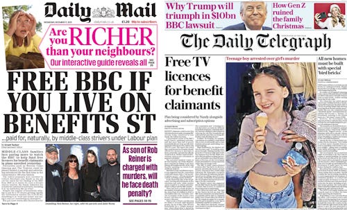 This apparent welfare robbery plot had been exposed in screeching front pages by the Telegraph and Mail back in December as "FREE BBC IF YOU LIVE ON BENEFITS ST”.